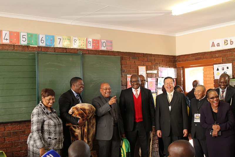 在捐赠暨纪念活动中,祖马总统发表了讲话,高度评价两国关系,对中国政府和华人社区提供的帮助多次表示感谢。他指出,曼德拉不仅属于南非,更属于世界。他号召大家学习曼德拉的精神,重视教育,借鉴中国在普及教育上的经验,学习中国人民的勤劳美德,共同致力于改善教育环境,为国家培养更多人才。