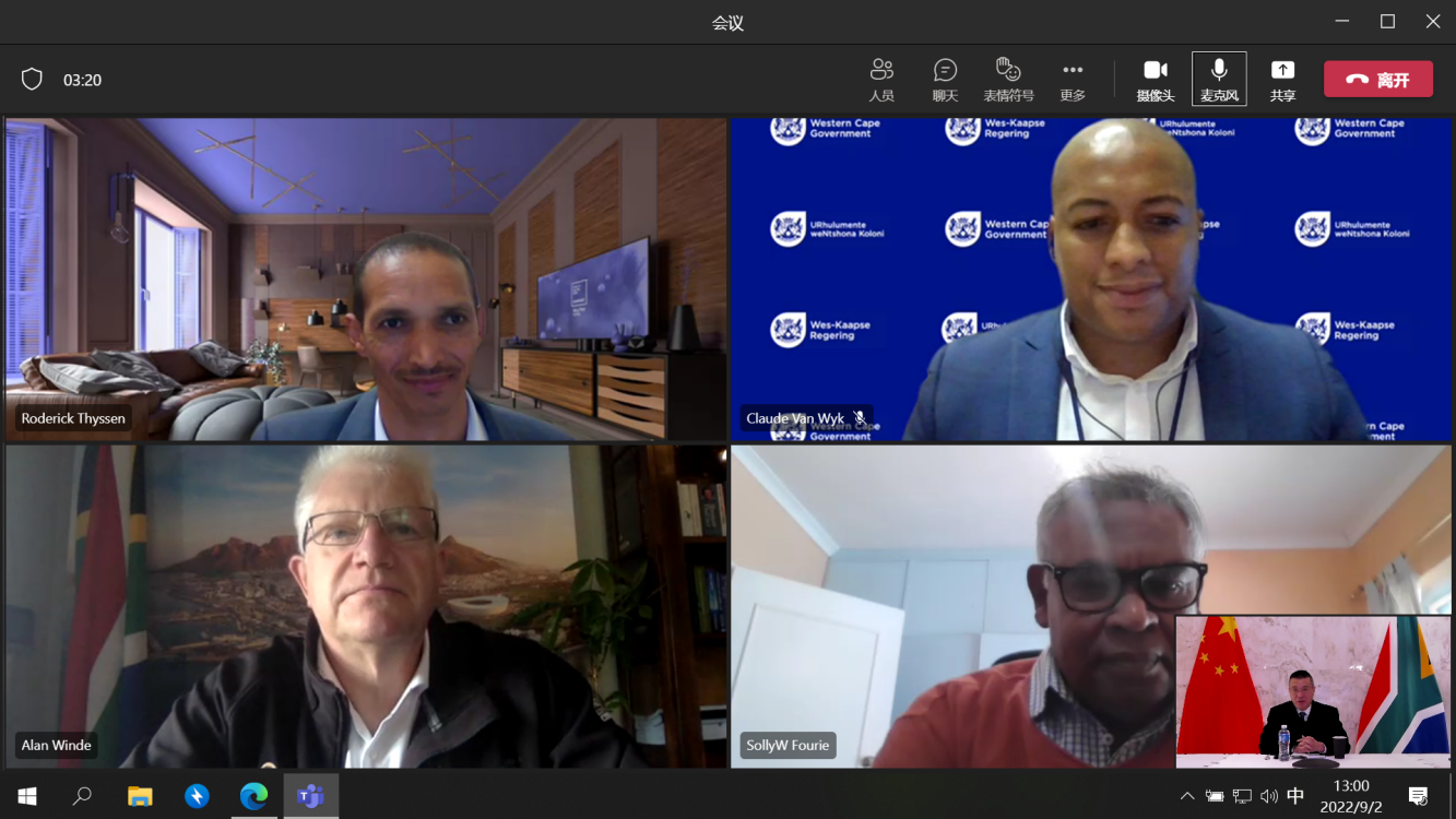9月2日,林静总领事以视频连线形式向西开普省省长艾伦·温迪(Alan Winde)辞行,汤长安副总领事参加会见。