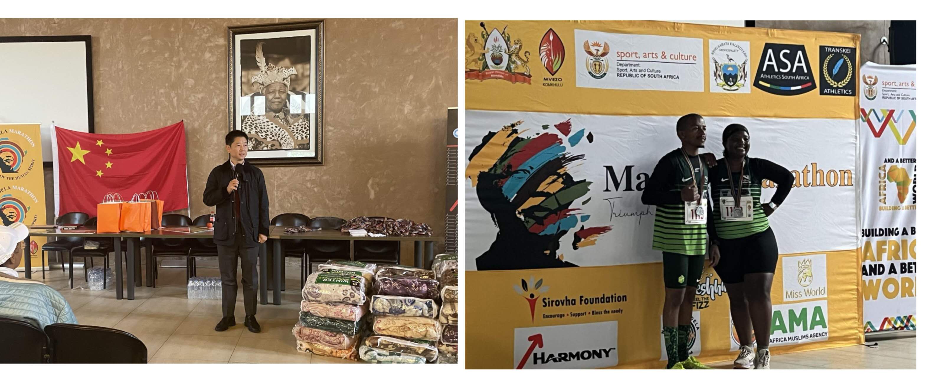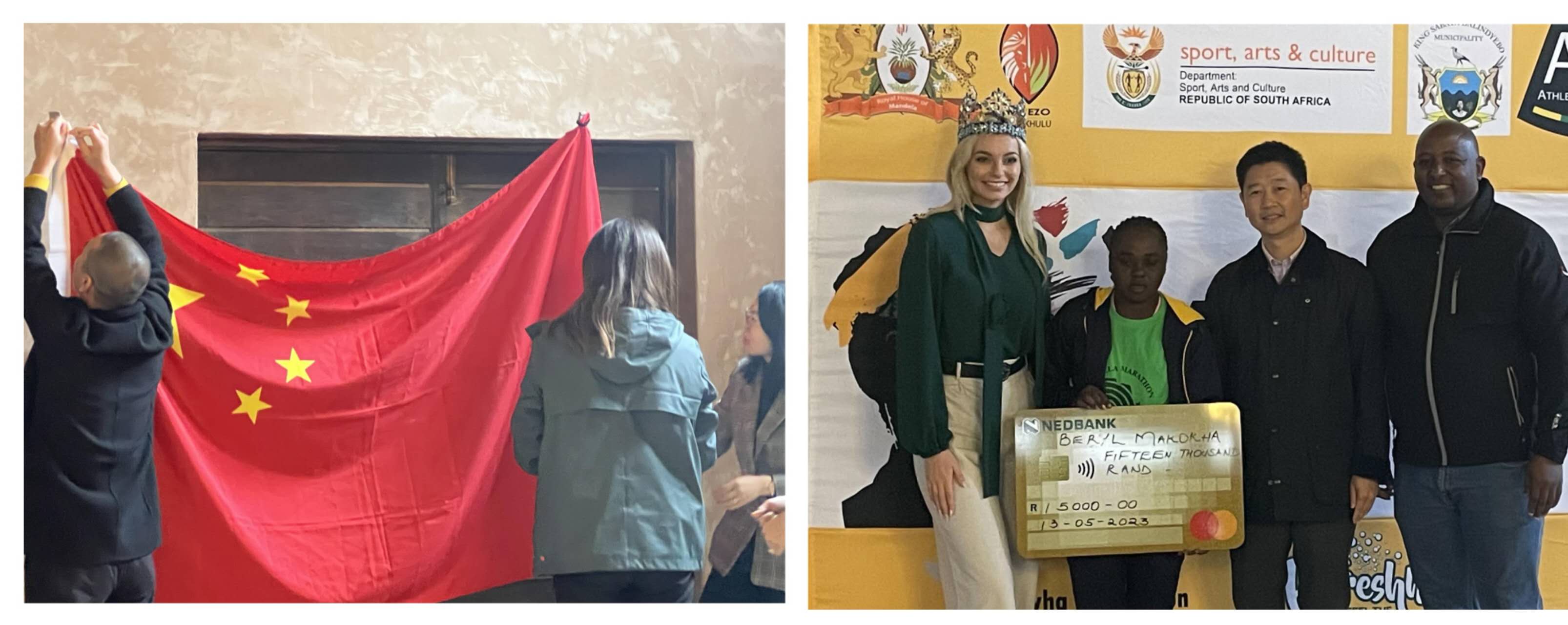 5月13日,应南非国民议会议员N.Z.曼德拉的邀请,汤长安副总领事赴东开普省Mvezo镇出席曼德拉马拉松比赛颁奖仪式。