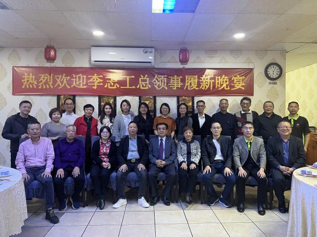 6月10日,夸纳省侨界为李志工总领事履新举行联合欢迎晚宴。夸纳省和平统一促进会、夸纳省警民合作中心、各侨团组织、商会及部分中资企业代表共一百余人出席。