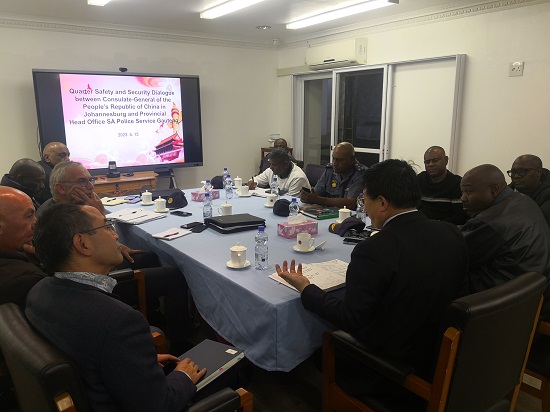 Mthombeni少将感谢唐总倡议召开两单位季度安全对话会,表示保证辖区内人员安全是豪登省警察厅的职责,警察厅愿继续与总领馆保持合作,定期举行安全对话会,为辖区内的中国公民和机构提供更好的安全保障。Mthombeni少将表示将尽快侦破涉中国公民的案件,并介绍了豪登省警察厅内部工作机制和流程。
