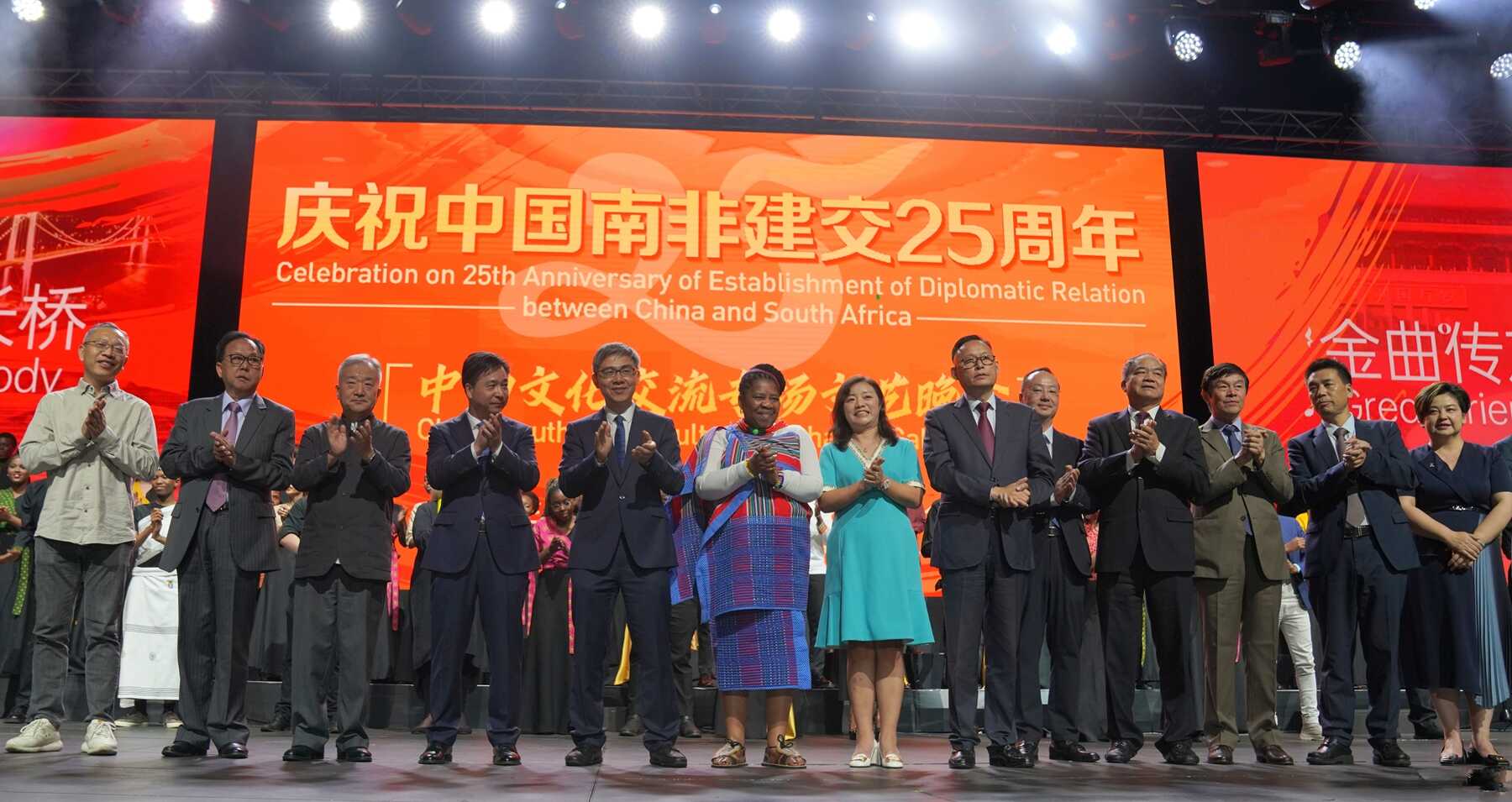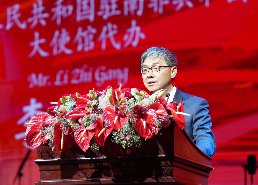 10月7日,驻南非使馆临时代办李志刚出席南部非洲中华福建同乡总会举办庆祝中南建交25周年文艺晚会并致辞,南非国际关系与合作部副部长德拉米尼、在南华侨华人代表、当地各界友好人士和媒体代表等1700余人出席。