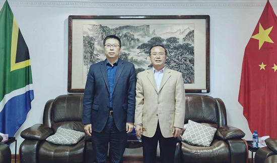 11月2日,驻约翰内斯堡代总领事周育江在馆内会见一汽车辆制造(南非)有限公司杨健总经理一行。