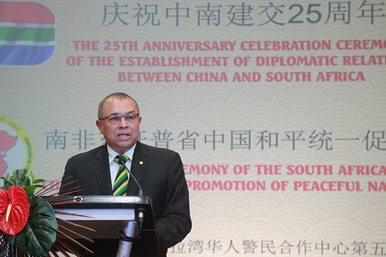 弗罗里克在致辞中表示,南非和中国的友谊源远流长,南非始终恪守一个中国原则,支持中国人民维护祖国和平统一大业。南中合作互利共赢,共同推进两国“同志加兄弟”的友谊不断发展向前,推动两国关系迈上更高水平。