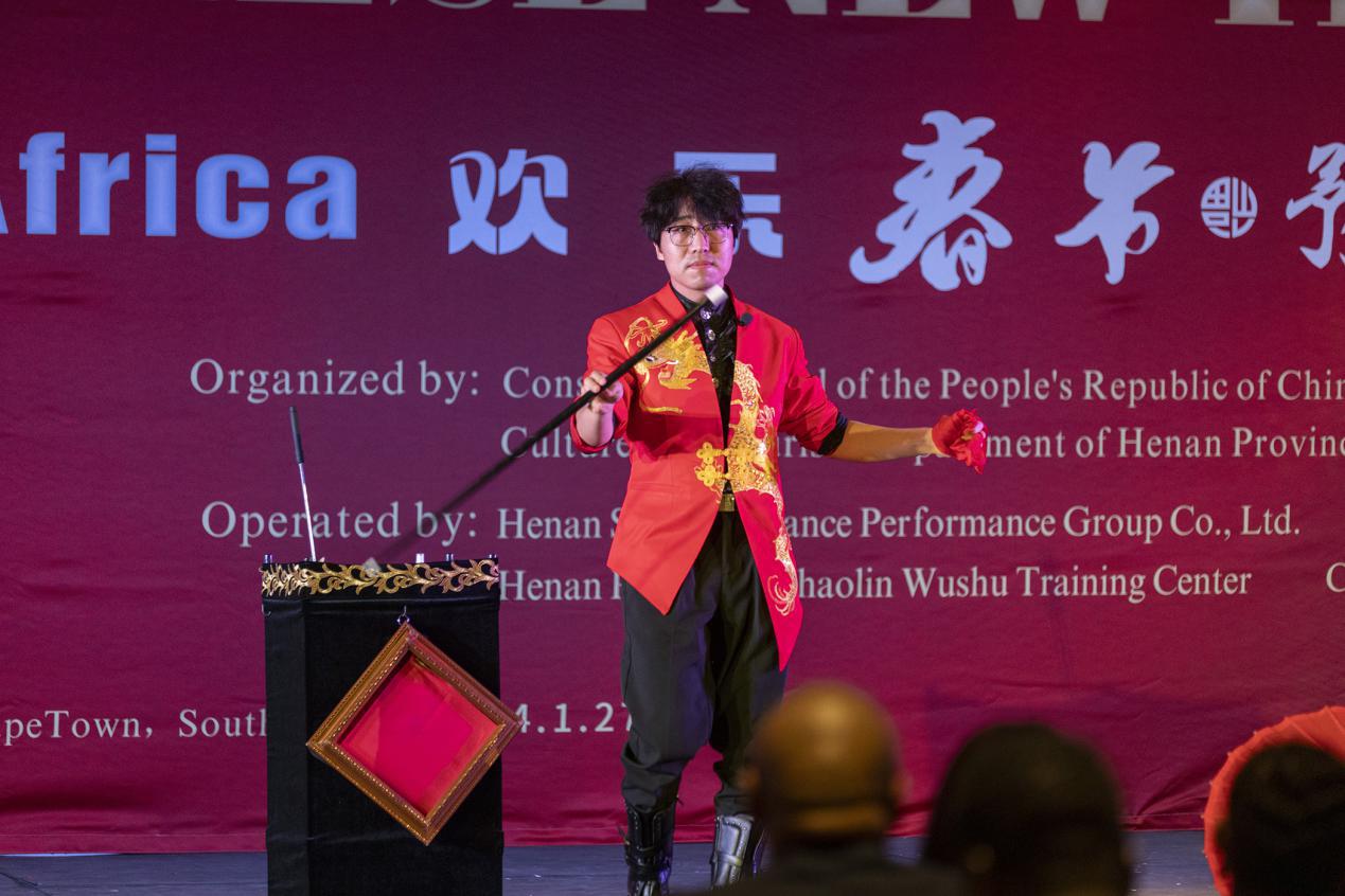 开普敦是此次“欢乐春节”演出团访非首站,30多位来自中国河南艺术团的演员为观众带来一系列精彩表演。整场演出持续两小时,共有包括少林功夫、魔术、豫剧、唢呐、二胡、歌舞等10余个节目。现场观众反响热烈,掌声雷动,流连忘返,感叹中国文化博大精深、魅力无穷,纷纷表示对传统佳节的美好祝福和对中南友谊长足发展的殷切期盼。华侨华人感谢代表团不远万里前来慰侨演出,令他们身处异乡仍能感受故土根脉之情。