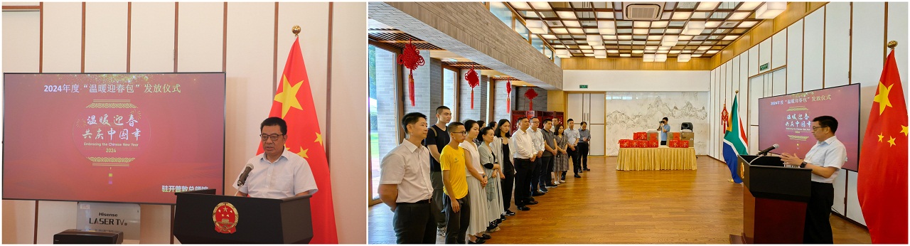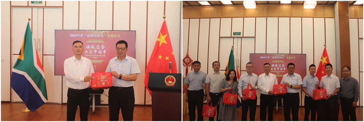 1月31日,驻开普敦总领馆在馆内举办“温暖迎春包”发放仪式。