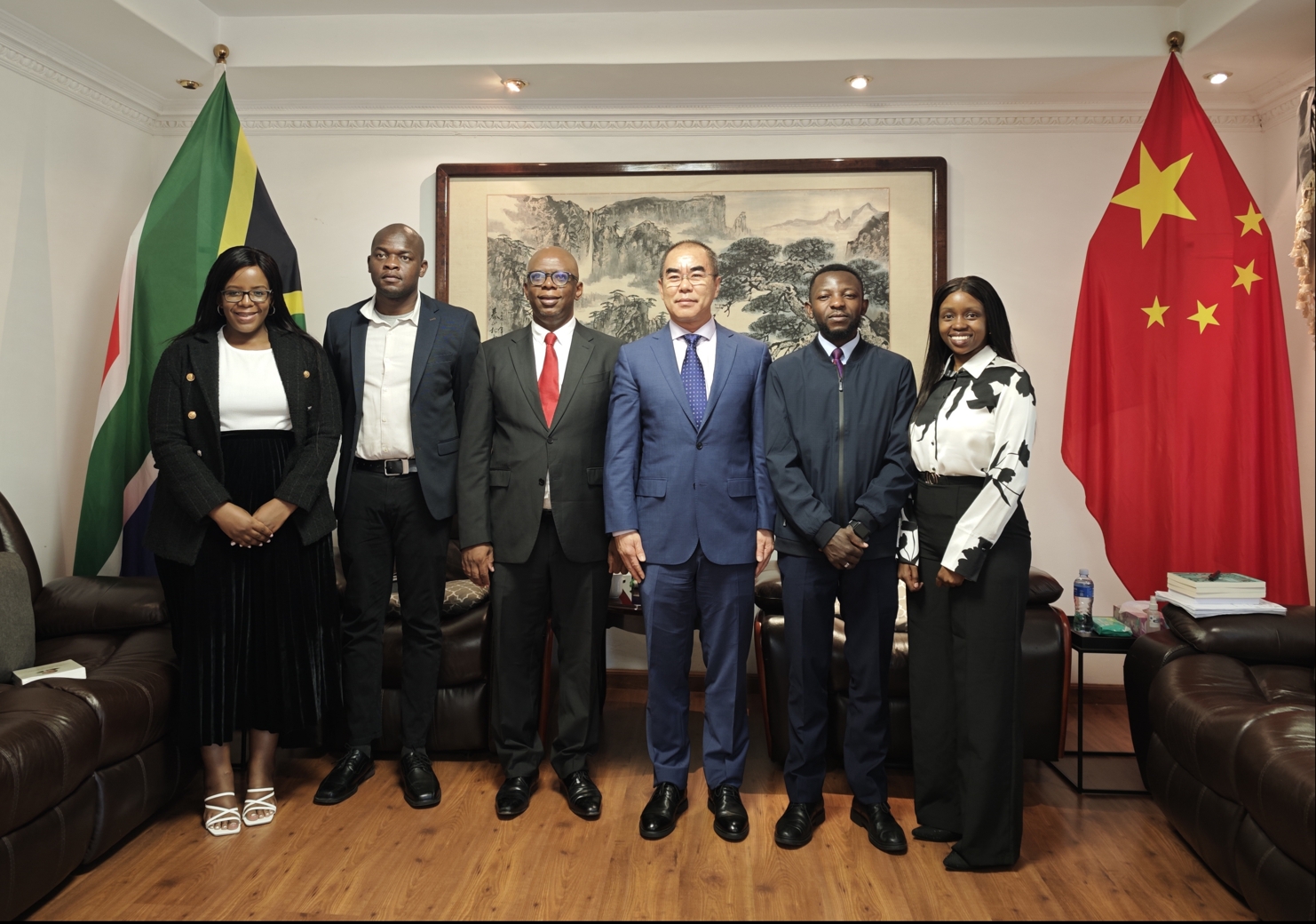 2024年2月21日,驻约翰内斯堡总领事潘庆江会见约堡大学非中研究中心学者,结合中央外事工作会议精神和中非合作成果,深入阐释人类命运共同体理念和实践,表示中方愿继续秉持真实亲诚理念,与非方共同努力开创更加美好的世界,希望学界继续发挥积极作用,为推动中非合作建言献策。双方还就下步如何更好开展交流合作交换了意见。