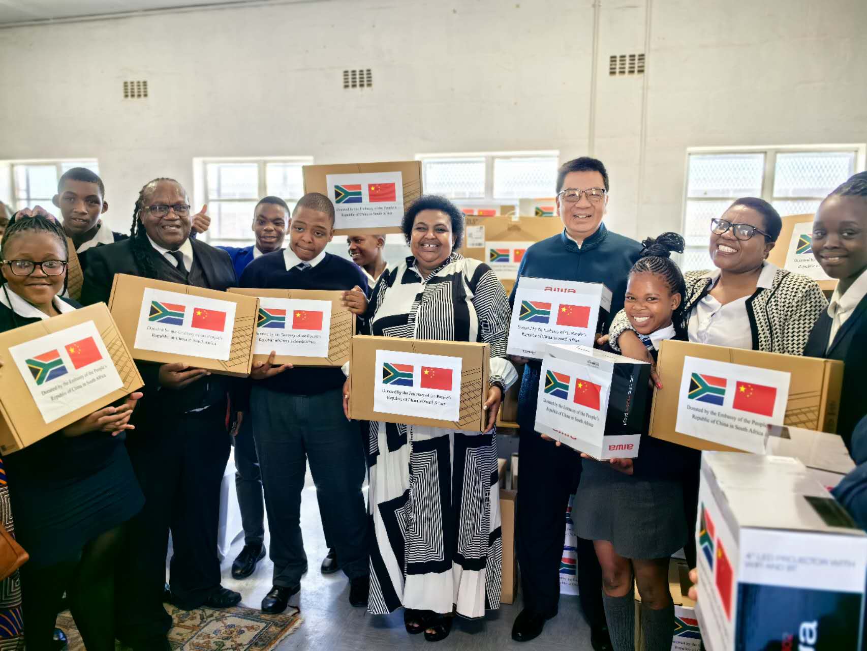 2024年4月17日,尤文泽总领事赴开普敦西维韦技术学校(Siviwe School of Skills),移交中国驻南非使馆向该校捐赠的一批教学设备。汤长安副总领事、学校校长约兰达·卢蓬多(Yolanda Lupondo)、西开普省教育部官员恩韦尔·哈桑(Enver Hassen)、当地社区代表、师生代表以及央视、新华社驻开普敦记者等出席活动。