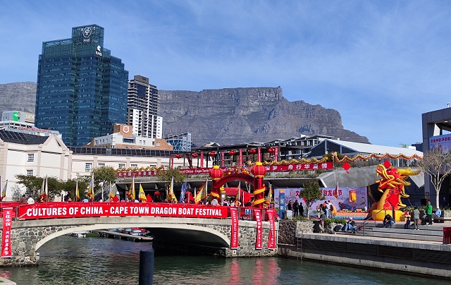 此次活动由开普敦侨界和开普敦龙舟协会联合举办,多支龙舟队伍参加比赛,除传统龙舟竞技外还举行了“龙舟拔河”等趣味比赛。水面上战鼓隆隆,助威呐喊声此起彼伏,吸引了众多游客驻足观看。