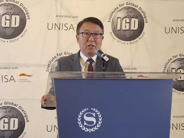 9月19日,驻南非大使吴鹏出席中国驻南非使馆和南非全球对话研究所合办的“中非合作论坛成立24周年:新时代中非关系”研讨会并发表主旨演讲。全球对话研究所所长穆坦布和当地专家学者、多国驻南外交官、媒体记者等120余人线下出席,数百名听众线上参与。