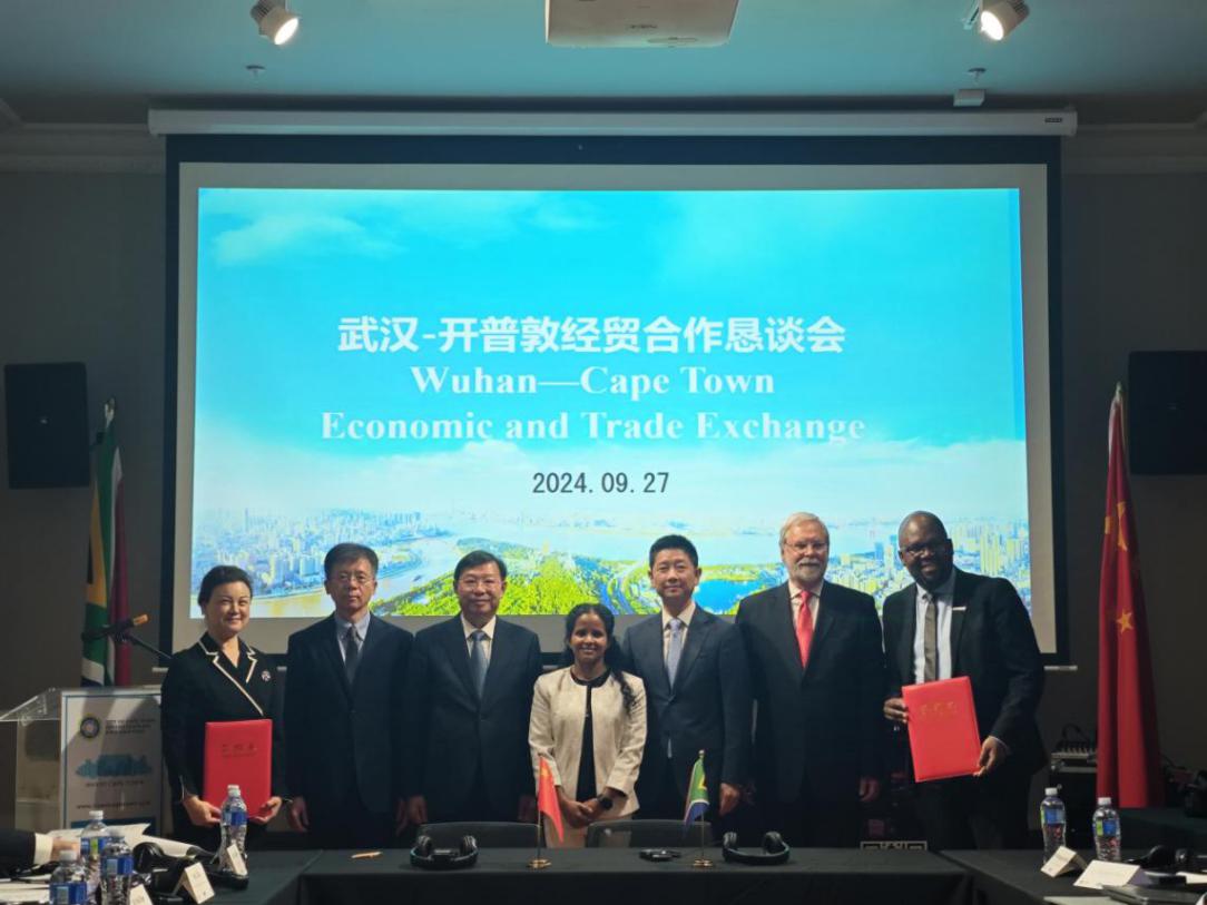 9月27日,汤长安副总领事出席武汉-开普敦市经贸合作恳谈会并见证两市签署合作备忘录。率团访问南非的武汉市政协主席杨智出席活动并致辞。开普敦市政委员会能源委员林伯格、市经济增长委员会主席贾斯特斯、西开普省投资贸易促进局古瓦贝等人与会。
