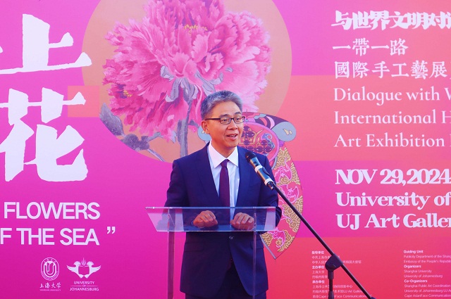 11月29日,上海大学与约翰内斯堡大学合办的“与世界文明对话:一带一路国际手工艺展览”在约翰内斯堡大学艺术中心开幕。驻南非使馆公使李志刚出席开幕式并致辞。