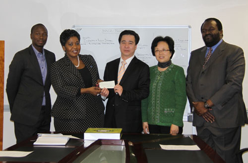 6月14日,南部非洲中华福建同乡总会在祖马夫人邦吉·恩盖马创办的糖尿病基金会驻地,向基金会捐赠了20万兰特,邦吉·恩盖马高兴地接受捐款,并向来宾介绍了糖尿病基金会的情况,她对华人侨团热心公益的善举表示感谢。中国驻南非大使田学军夫人乔杰参赞应邀参观了邦吉·恩盖马基金会,并见证南部非洲中华福建同乡总会向基金会的捐款仪式。