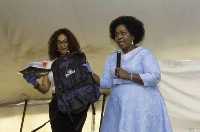 全非洲华人和平统一促进会和中国-商会捐赠了150个高中生用的书包。