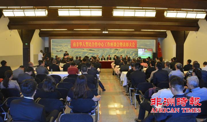 本报记者 孙想录报道 2017年11月29日,驻南非使馆召开南非华人警民合作中心工作座谈会暨表彰大会,总结近年来华人警民合作中心发展经验,表彰为维护侨胞安全与合法权益做出突出贡献的先进集体和个人,并就助力南方打造“平安南非”开展动员。林松添大使出席活动并讲话。来自外交部、公安部、中央编办等国内职能部门和驻南使馆、驻约堡、德班、开普敦总领馆领导,在南主要侨领、中资机构负责人和中央驻南媒体、当地华文媒体等百余人参加。