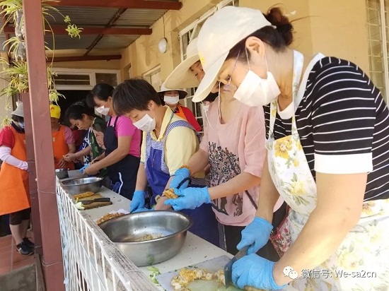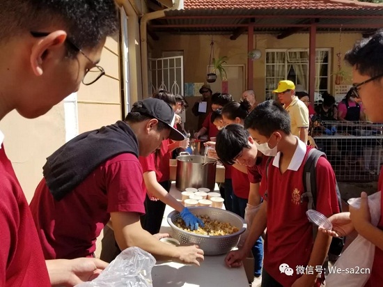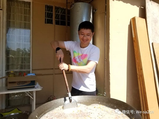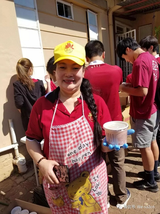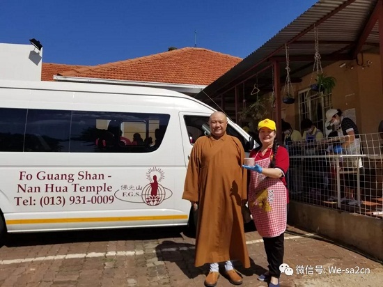*南华寺慧行法师与赞助者——约堡唐人街金台北宾馆董师姐启程分发腊八粥。