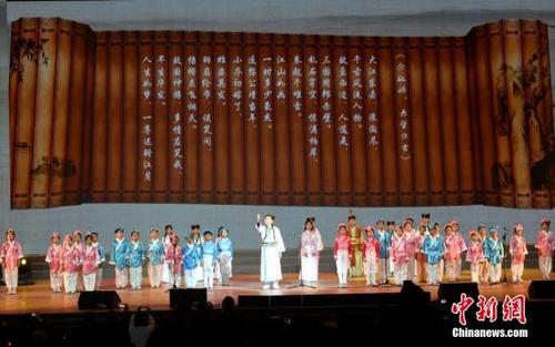 资料图,2017年“曹灿杯”获奖选手集体朗诵:《古诗联诵》。中新社记者 张勤 摄