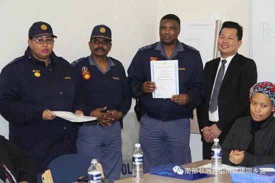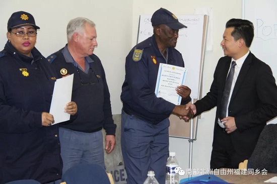 6月28日,受南非自由州警察厅防暴警察总局的邀请,自由州省福建同乡会受邀参加三位退休警长的退休仪式,华人代表石钦平先生与黄勇华先生做为警方的活动嘉宾,对过往这些年当地的防爆警察做出了积极的评价。