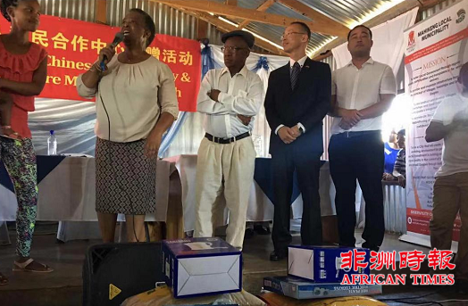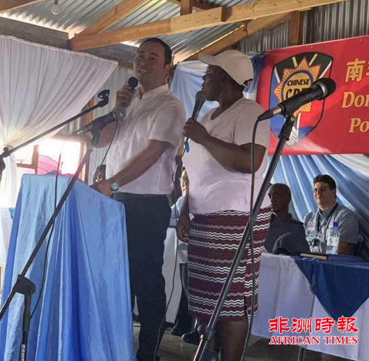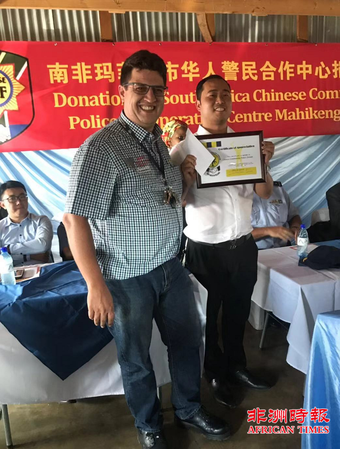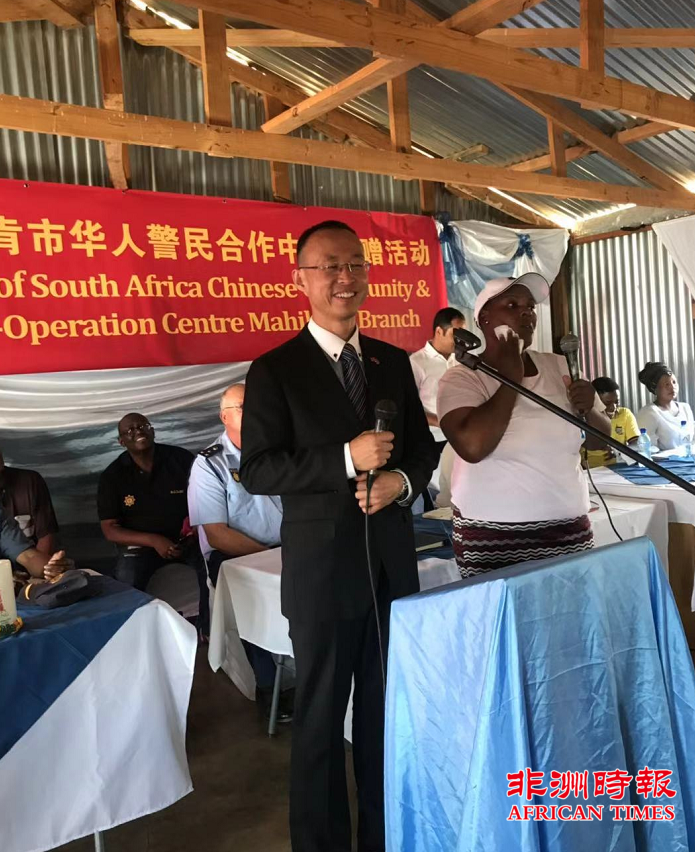 此次捐赠仪式上,马菲肯华人警民合作中心捐赠了包括大米、食用油、面粉等在内的生活用品100份,每份价值500兰特,驻南非使馆也捐赠了价值两万兰特的水壶和电磁炉灶。庄国功主任向当地民众介绍了华人警民中心的职能作用及积极参加当地社区的巡逻,努力回馈当地社会等。
