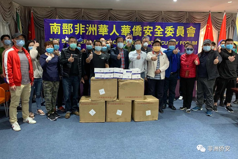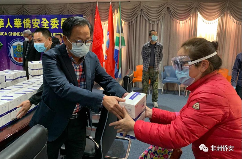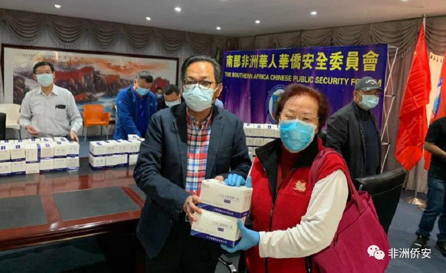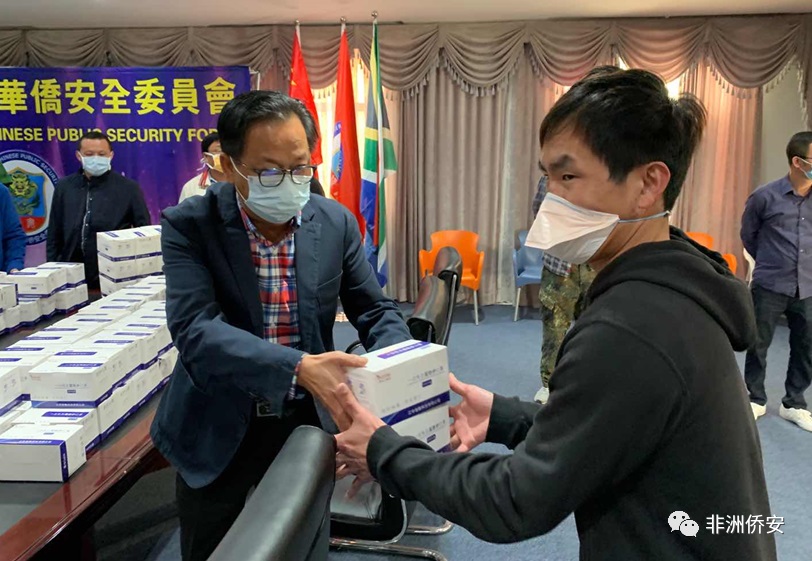 南部非洲华人华侨安全委员会日前收到祖国寄来驰援南非侨胞的一万多只爱心口罩,并于5月18日在约堡Rivonia东方商城的“侨安会”总部派发给会员和相关的侨胞朋友,体现了海外送温暖的大爱精神。
