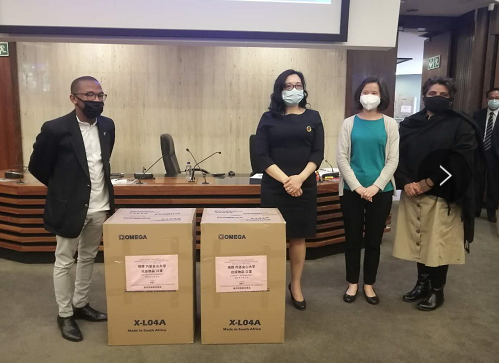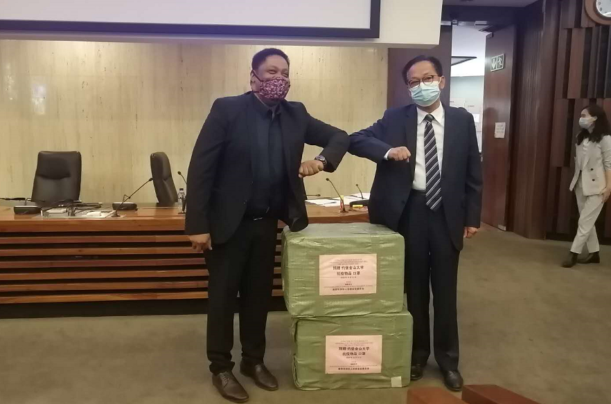来自南部非洲闽南总商会的王梅霜常务副会长对吴少康主席的理念表示赞同。她代表出差在外的闽南总商会会长苏建强表示,新冠疫情是全球的危机,在抗击疫情的努力上,商会将与南非始终站在一起,并肩作战。王会长说,只有拥有社区的互帮互助意识,我们才能共同度过艰难的时光。南部非洲闽南总商会十分愿意支持金山大学抗击新冠疫情的努力,商会将竭尽所能为确保教职员工与学生的健康、平安提供协助。此次捐赠中,南部非洲闽南总商会为金山大学捐赠了5万4千个口罩。