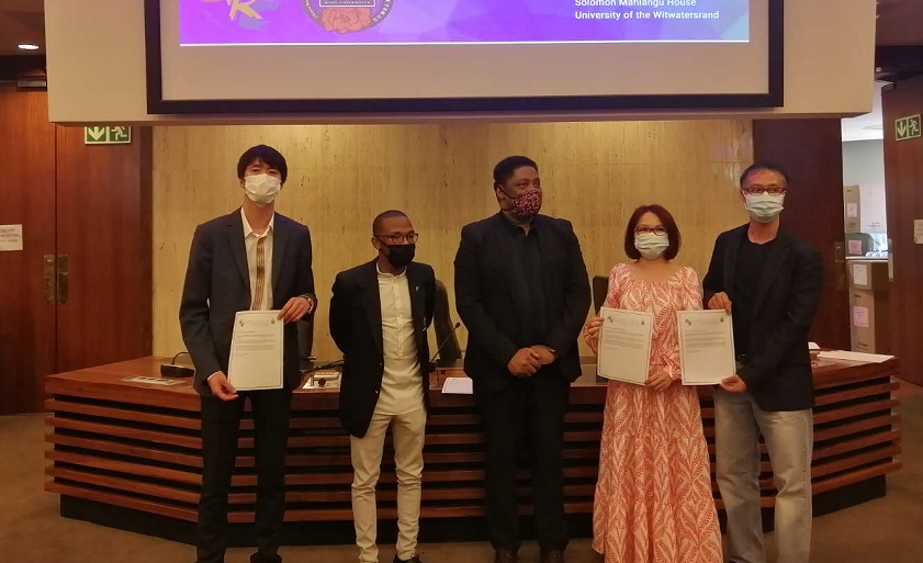 各位侨领与社团领袖发言结束后,现场进行了捐赠仪式,学生事务部部长Jerome September、学生会主席Thuto Gabaphethe、国际学生办公室主任Gital Patel、金山大学学生学者联合会指导老师王海荣博士、学联主席黄立志、赵景涛部长、范翔会员等与各位侨领进行防疫物资交接,并合影留念。随后,金山大学的几位领导也为捐赠的侨领们一一颁奖。