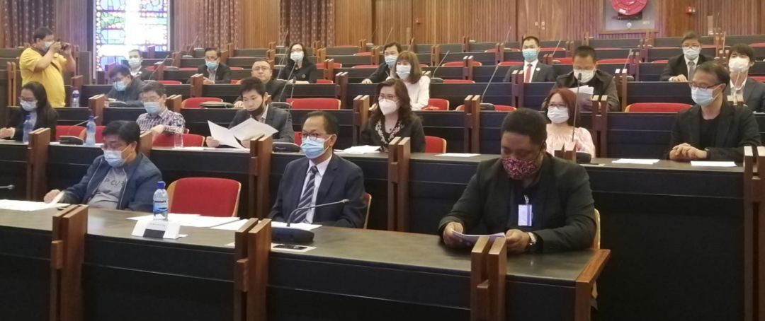 作为贵宾,南部非洲华人华侨安全委员会吴少康主席、南部非洲闽南总商会王梅霜常务副会长、南非AUSMA电子产品有限公司冯德兴董事长、南部非洲粤港澳总商会何文强副会长及夫人陈月珍女士、全南非华人妇女联合会荣誉主席及Newedge集团董事长朱丽丽女士、世界百家姓总会及猎豹秒送物流公司于洋主席,以及女神之星集团安馨总经理以备受礼遇的捐赠者身份全程参与会议并发言。此外,30余名来自侨界各大商会的主席等列席会议。受制于社交距离,金山大学中国学生学者联合会仅由学联指导老师、计算机系讲师王海荣博士、黄立志主席、组织部赵景涛部长,以及协会成员范翔作为代表设计、组织并出席了会议。会议由黄立志主席主持。