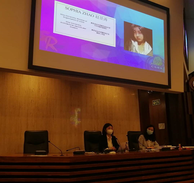 随后,金山大学中国学生学者联合会组织部部长赵景涛代表协会发言,她首先对金山大学及学生会一如既往的支持表示感谢,同时也感谢今天莅临的侨界前辈及领袖们,她认为侨界领袖们的善良举止为学生们树立了学习的榜样。赵景涛说,金山学联从成立到现在有一些小的成绩全有赖于各界的支持,未来协会将继续扮演桥梁的角色,连接起中国、南非两国青年与文化。赵景涛特别感谢了吴少康主席领衔的7位侨领的慷慨捐助,数额之巨令她感到震惊、骄傲与自豪。侨界领袖的善举教会了我们应当互相扶持同舟共济的优秀道德品质,将一直鼓舞和激励金山大学的学生们,直到将来学生们终于成为今天的侨领们。