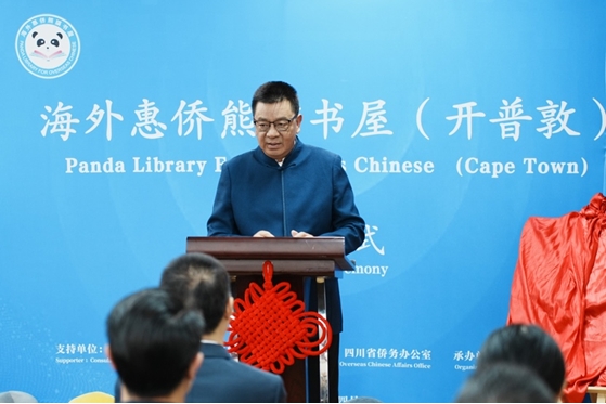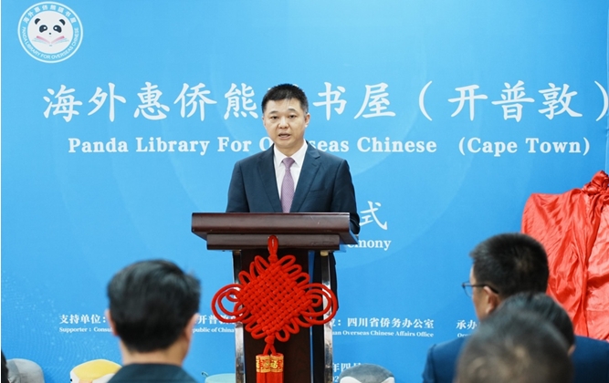 四川省侨办主任文甦在致辞中指出,开普敦“海外惠侨熊猫书屋”正式启用,必将进一步筑牢四川与南非的友谊桥梁,成为兴教育促交流、播文化展形象、汇民心聚共识的重要平台。衷心希望承建侨团细心维护、用好用足“熊猫书屋”资源,精心组织开展丰富多彩的文化活动,持续服务广大侨胞精神文化需求,做好海外和谐侨社的建设者;希望旅南侨胞继续秉承优良传统,展现大国侨民良好形象,为住在国经济社会发展贡献智慧力量,做好深化中南友谊的践行者;希望各位侨胞朋友坚定文化自信,以开阔的国际视野、多样的国际语言,阐释中国精神、传播中国声音、展现中国面貌,做好中国故事的传颂者,推动中外文明互学互鉴、促进中外民心相融相通。