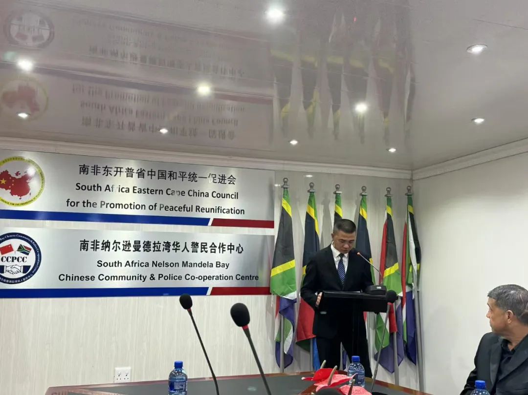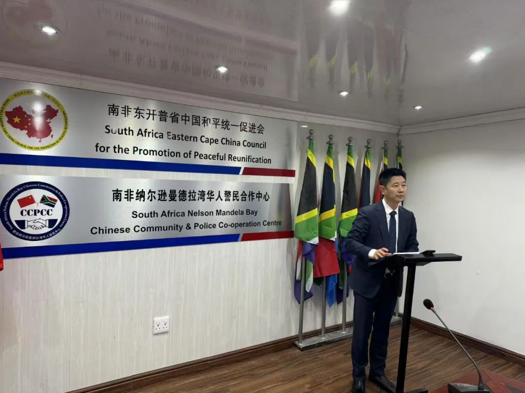 仪式由南非纳尔逊·曼德拉湾华人警民合作中心主任、南非东开普省中国和平统一促进会会长陈敦赐先生主持,现场嘉宾包括东开普省警察代理总监Zithulele Dladla少将、中国驻开普敦总领馆副总领事汤长安先生、警务联络官王少峰先生、纳尔逊·曼德拉湾市副市长Gary Van Niekerk议员、东开普省飞鹰组Brigadier Lius等重要代表。