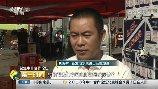 新发地水果进口及批发商 郭好坤:听说非洲的其他品种,比如蓝莓车厘子也都不错,时间和我们也刚好是反季节的,我们希望有更多机会能把这些品项引进进来。