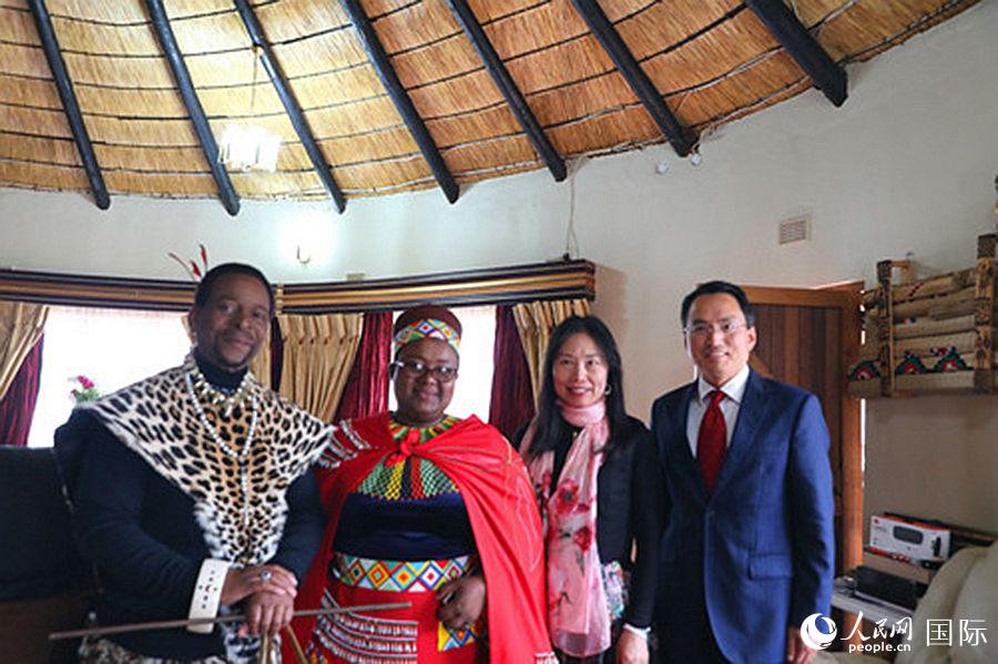 中国驻德班总领事费明星夫妇与祖鲁王和王后合影留念。记者李滢嫣 摄