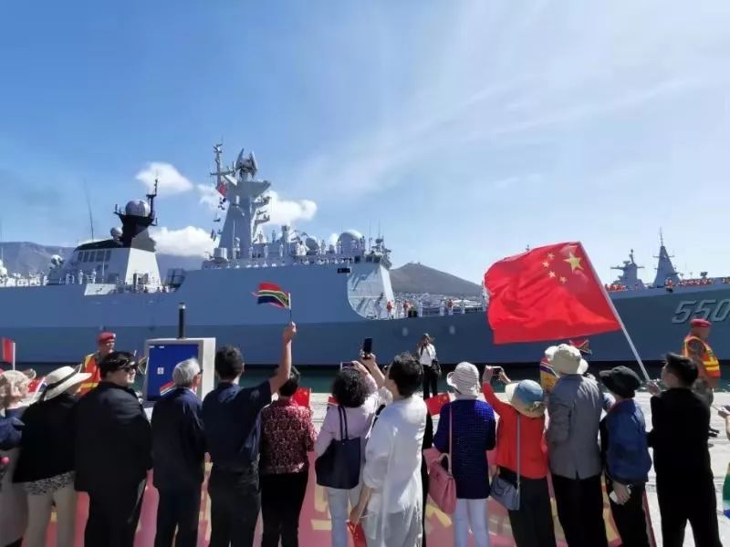 下午15时,潍坊舰缓缓驶入南非开普敦港区,舰员们在甲板上整齐列队,向欢迎人群挥手致意。15时20分,潍坊舰缓缓靠上码头,联演中方工作组组长、海军参谋长助理刘宗成少将,南非代表团团长、南非海军舰队司令马哈拉纳少将,俄方代表团团长、俄海军副参谋长泽姆斯科夫少将,中国驻开普敦总领馆林静总领事、中国驻南非使馆尚鸿武官及使领馆工作人员,当地华人华侨代表约100余人在码头迎接潍坊舰到来。