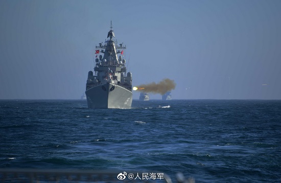 据“人民海军”微博上发布的图片显示了中国海军、俄罗斯海军和南非海军举行联合演习的场面。微博文字写道【三国同场演练,场面更加劲爆!】“射击!”伴随一阵轰响,潍坊舰副炮一举击沉水面上的靶标……“Good job!”面对我方舰载直升机的精准着舰,俄海军塔台指挥员竖起了大拇指……没错,这就是正在南非开普敦附近海域举行的中俄南非三国海上联演缩影。想看前方实时报道,时刻关注海叔!(王冠彪 编/海叔)