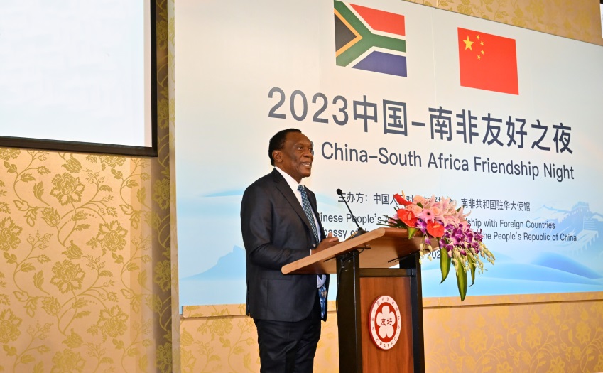 国际在线消息(记者 潘晓琳 郭维真):为庆祝中南建交25周年,并为金砖国家领导人南非峰会预热,7月27日,中国人民对外友好协会和南非驻华大使馆共同举办“2023中国-南非友好之夜”。中国人民对外友好协会会长林松添和南非驻华大使谢胜文联合举行招待会并致辞。8个非洲国家驻华大使、20个非洲国家驻华外交官等130余人出席活动。