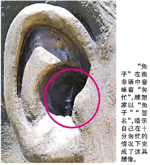 还有网友认为,充满幽默感的曼德拉绝不会介意小兔“寄居”在他巨大的耳朵里。“这算不上什么讽刺,小兔子好像在跟曼德拉聊天,这可以展示曼德拉富有想象力的一面,”这名网友说。“如果你提前告诉曼德拉,你想在他雕像的耳朵里刻一只小兔子,他一定会大笑,然后说没问题。”