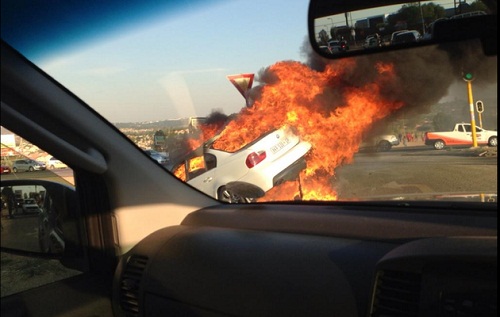10月7日,一辆宝马E90的3系列车在Witkoppen路上起火燃烧。很多路过的网友拍下了这一幕。