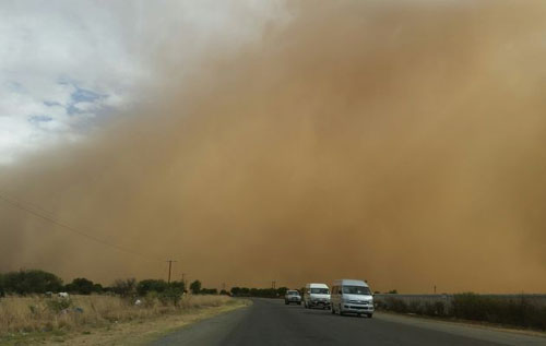 10月16日,强劲的风势外加浓厚的云层,雨水还没来得及落在地面上就已经蒸发殆尽。在这种奇特的自然原因下,南非自由省、豪登省和西北省等地均遭到了沙尘暴的袭击。 南非气象预报员表示,时速达到80公里的强风,是导致沙尘暴的主要原因。 气象预报员表示,这主要是因为干燥的微尘受到雷雨的推动四处散播,又被冷空气推动向各个方向扩散。 但是,南非气象部门并未解释这些微尘产生的原因。