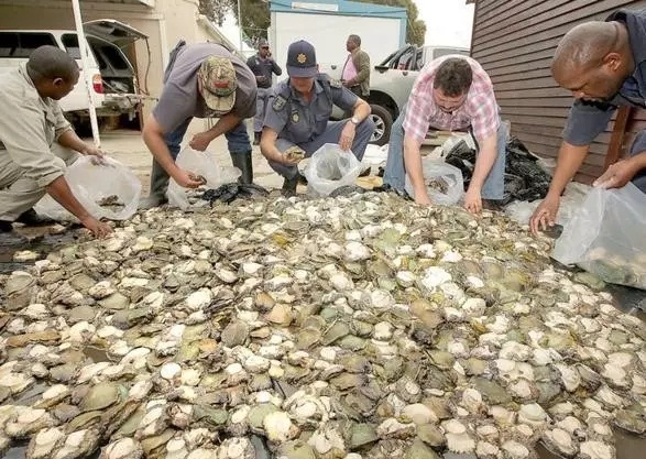 飞鹰组表示,这起案件可以追溯到2010年。当时,警方在他们位于桌山景区以及Vredenburg的住宅,发现了将近十万头鲍鱼,价值2000万兰特左右(南非警方对于鲍鱼的价格统计一向不是很靠谱)。警方将之定义为一个大型的鲍鱼犯罪团伙。