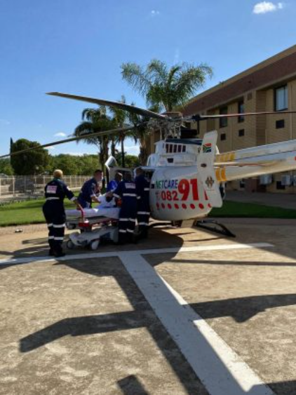 “医护人员对两名分别受重伤和中度伤害的成年男子进行了评估。由于伤者伤势严重,Netcare公司的911救护直升机已经启动,将这位先生空运到一个专门设施,以进一步救治,”Netcare公司发言人肖恩·赫布斯特说。