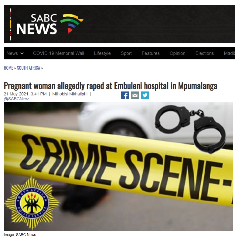 据南非国家广播公司当地时间5月21日报道,一名孕妇在南非普马兰加省一家名为Embhuleni的医院就医时被歹徒强奸。随后,当地居民在医院门口举行游行,呼吁政府提供安全的就医和生活环境。