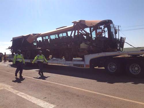 据报道,这起事故发生在南非行政首都比勒陀利亚以东100公里的一个城镇附近。卡车为了躲避另一车辆而偏离车道,与疾驰而来的大巴相撞。
