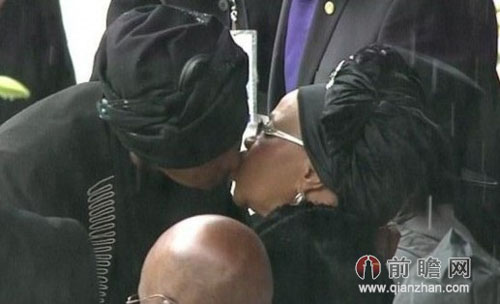 曼德拉追悼会直播 前妻拥吻现任妻子