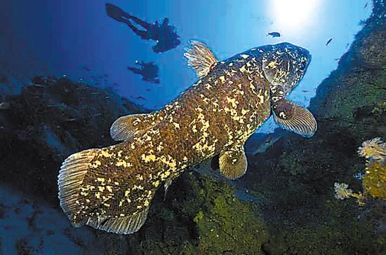 2010年赴南非的考察队中摄影师劳伦·巴里斯塔拍到的腔棘鱼,它长有与其他鱼截然不同的白色斑点。