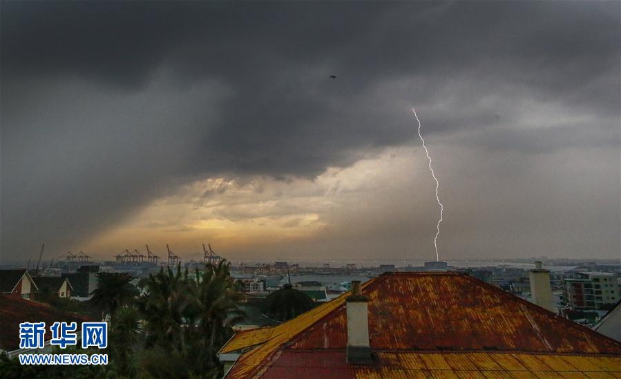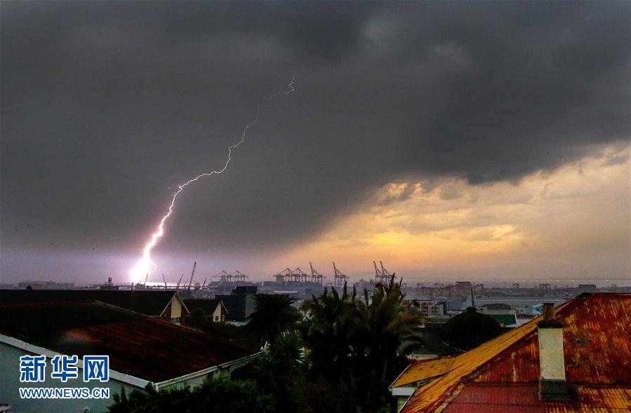 这是4月26日在南非开普敦的伍德斯托克拍摄到的闪电。新华社/欧新