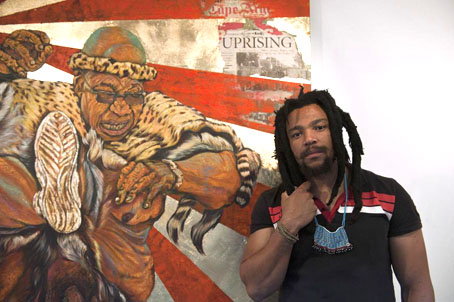 本报讯 来自开普敦的艺术家马布鲁(Ayanda Mabulu),以他极具政治争议性的绘画作品而闻名。最近,他的又一幅作品险些在FNB举行的约堡艺术节上遭禁。