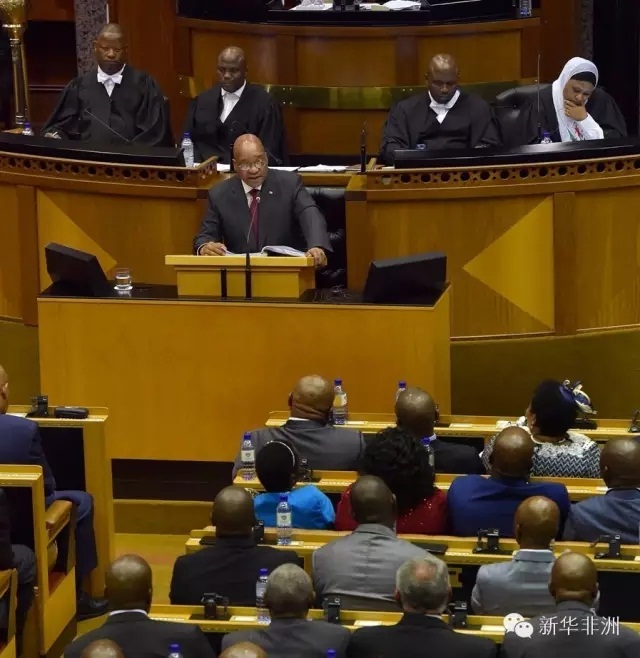 (资料)2016年2月11日,在南非开普敦,南非总统祖马发表国情咨文。
