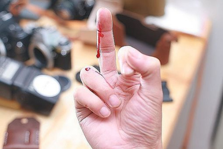 2.割伤。割伤发生后,首先应用一块干净的纱布直接持续按压住伤口。按压大约30分钟后依然流血不止,应立即就医。止血后可用清水清洗创口,但 不要用肥皂水。然后,用创可贴或干净绷带包扎伤口,创可贴或绷带一旦弄潮或变脏,应立即更换。如果切口较深或者成锯齿状,应请专业医生处理。