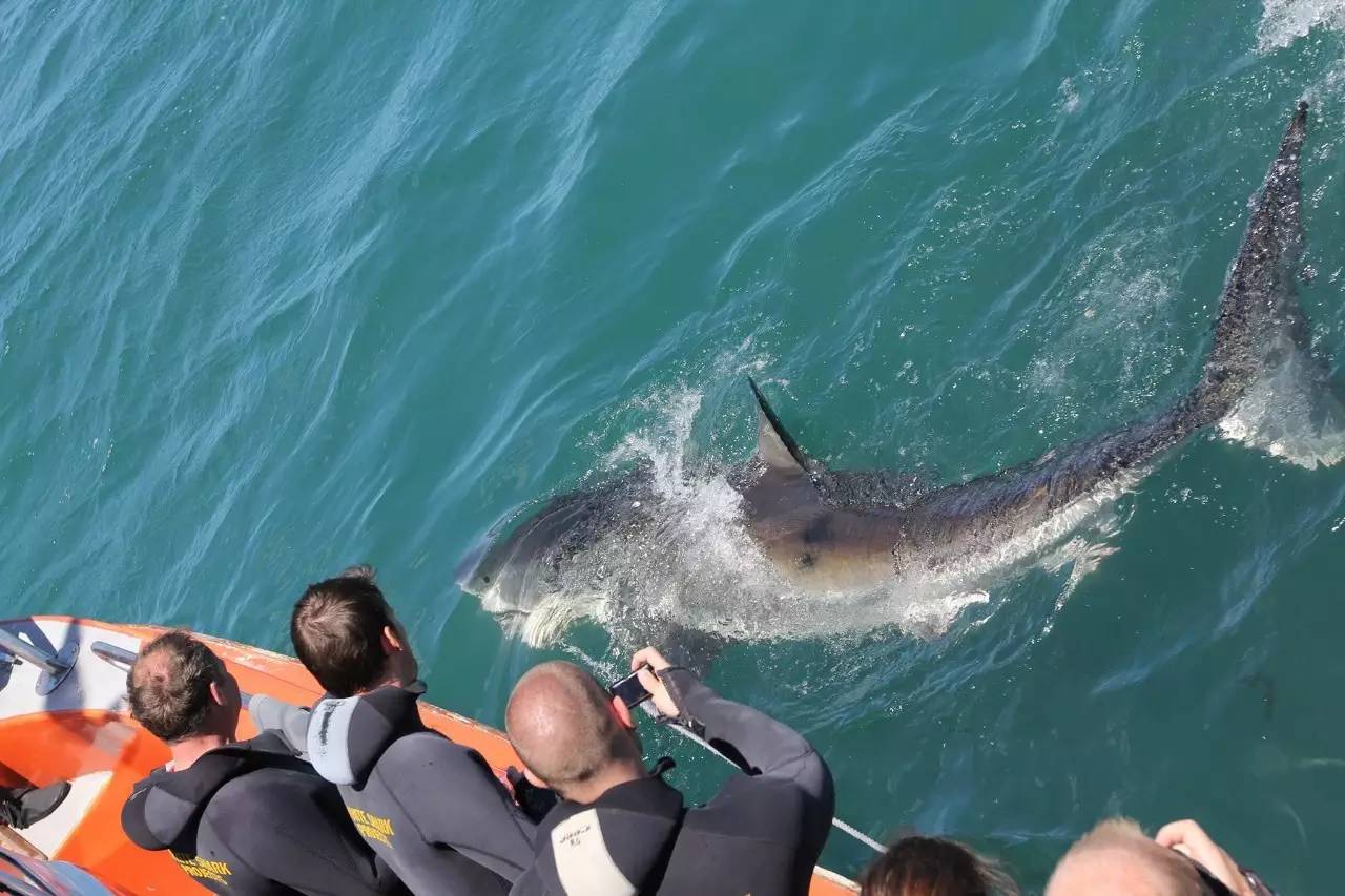 参加者穿上防寒衣,走进铁笼中近观鲨鱼。船上的工作人员为了吸引鲨鱼靠近,会抛掷鱼肉诱饵,饥饿的鲨鱼猛然靠近,犹如电影《大白鲨》般震撼惊悚!![]() 你需要做的只是带着目镜呼吸管在水面下漂浮,然后这个特别需要勇气,因为在你身边的是重量超过一千公斤、很可能突然发起攻击的猎食者。![]()