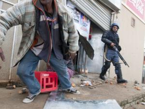 南非华人网报道:2012年06月25日西开普省一居民区因住房,厕所和柏油路等问题进行游行kang议,并发生曝乱抢劫多家索马里人商店和华人超市,后警察使用催泪瓦斯,橡胶子弹等试图驱散人群。警方证实,共有32名男性和12名女性被逮捕。